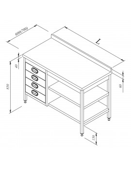 Ürün konstrüksiyonu paslanmaz çelikten mamuldürÜst tabla alınları 40 mm ve sırt 60 mmTezgah ayakları..